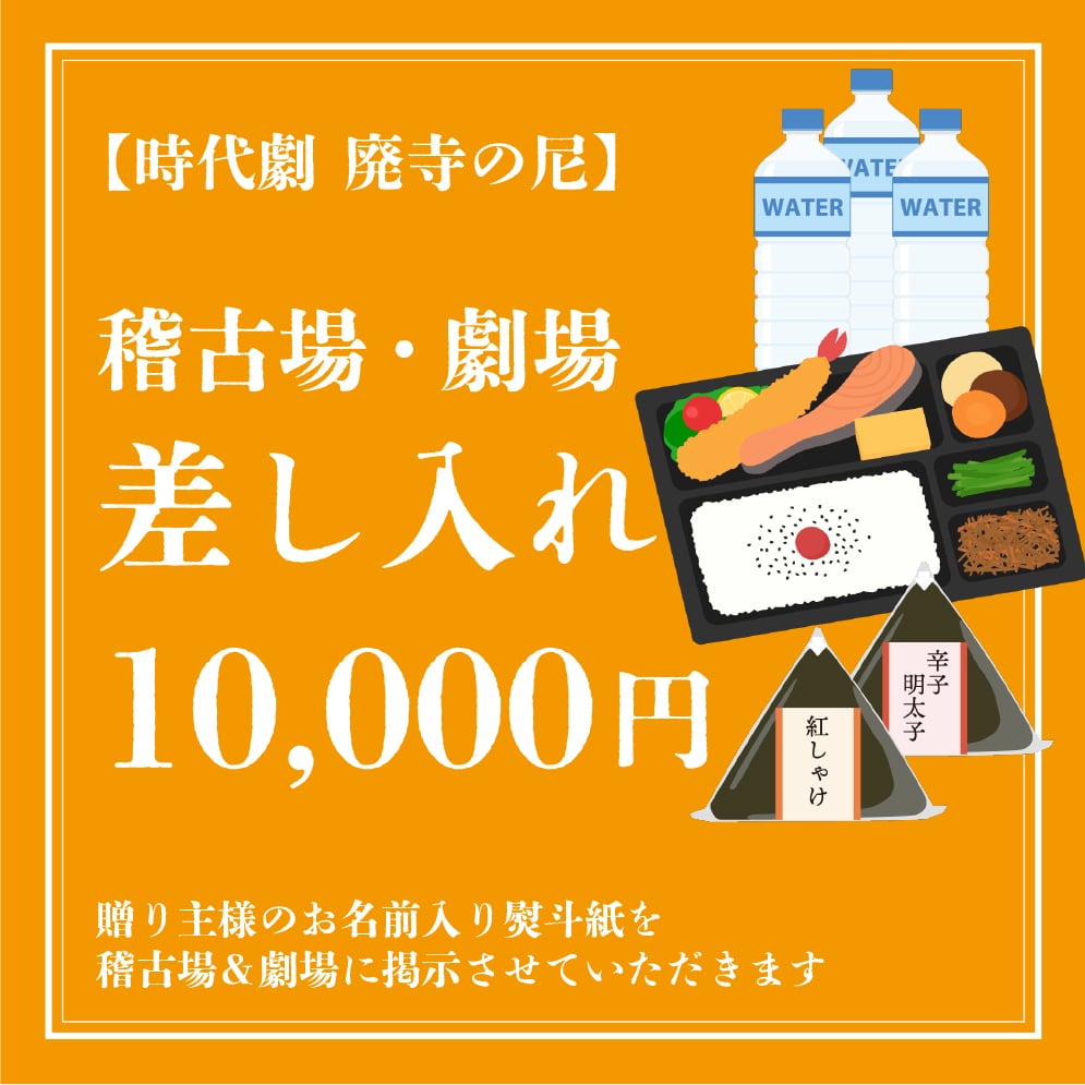 お客様のメッセージ入り廃寺の尼オリジナル熨斗とともに、稽古場/劇場へお弁当の差し入れをいたします。